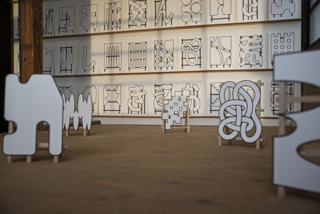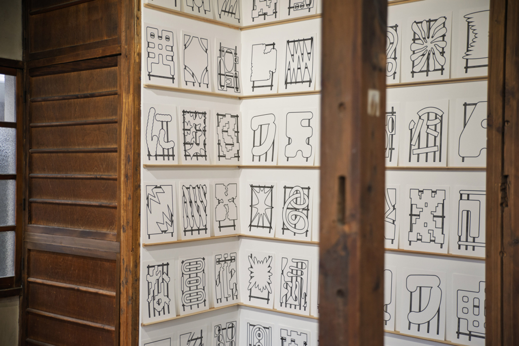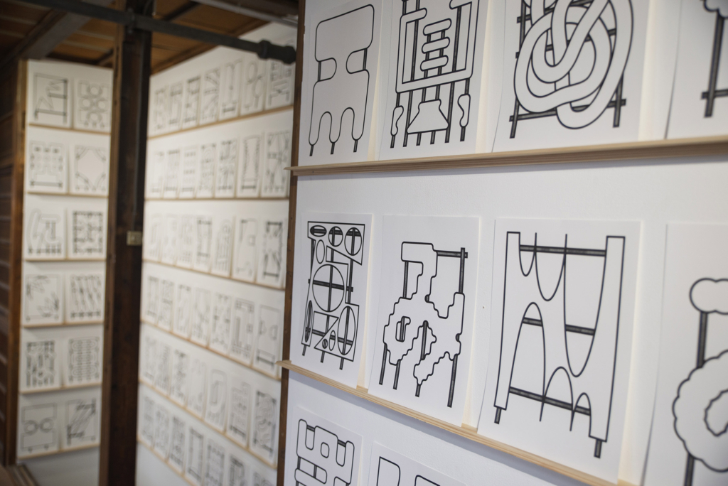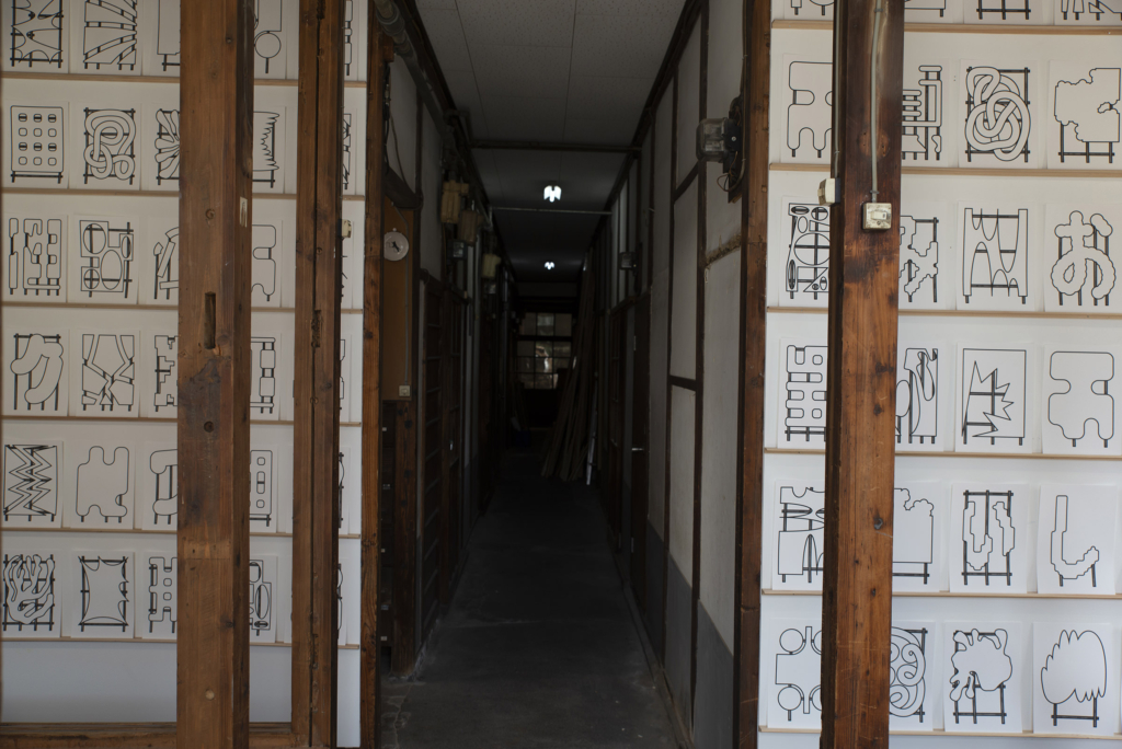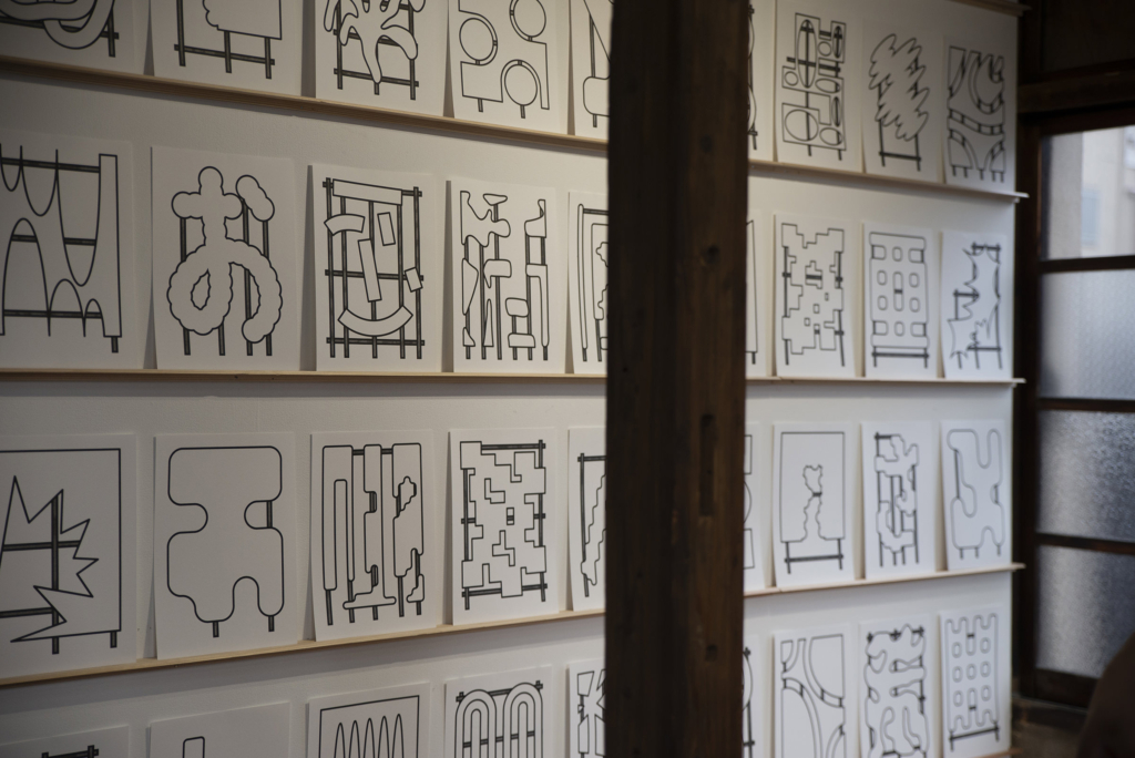 ワークショップを通じて地域の子どもたちと導き出した「このはな」を表現する単語を、ストリート・スカルプチャーに展開するためのラフスケッチやミニチュアの制作プロセスを展示した。